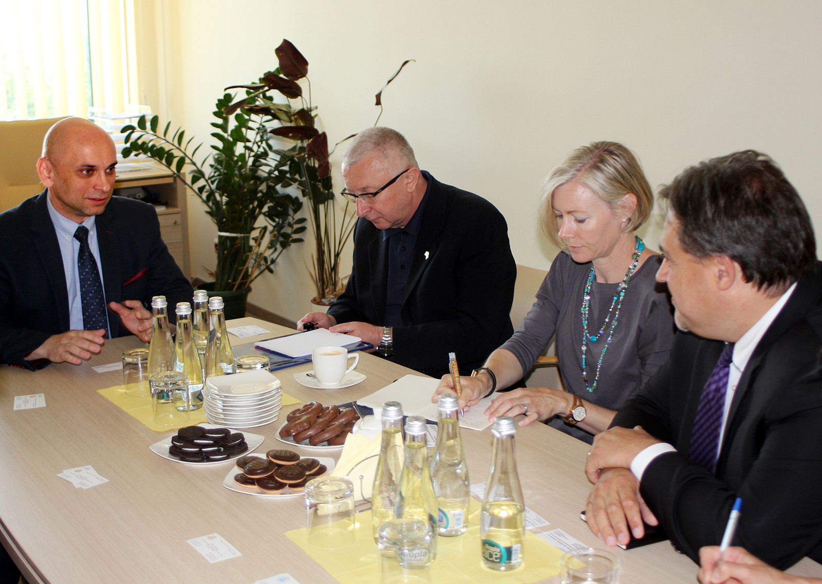 2 czerwca br. Politechnikę Rzeszowską odwiedzili Kathleen Graham z Agencji Ochrony Środowiska (EPA) i Thomas Zia, konsul ds. polityczno-ekonomicznych z Konsulatu Generalnego USA w Krakowie – uczestnicy konferencji Impact'17 w Krakowie. Spotkał się z nimi prof. dr hab. inż. Grzegorz Budzik, prorektor ds. nauki oraz dr hab. inż. Mariusz Oleksy, prof. PRz, prorektor ds. rozwoju i kontaktów z gospodarką. W rozmowach wzięli udział również dr inż. Sławomir Stec, p.o. dyrektor Centrum Transferu Technologii, Maciej Szalacha, p.o. kierownika Laboratorium Badawczego Aeoropolis, Marek J. Guzik, specjalista ds. polityczno-ekonomicznych z Konsulatu Generalnego USA w Krakowie, oraz Izabela Misiewicz-Santos, asystentka ds. energii i nauki z Ambasady USA w Warszawie.