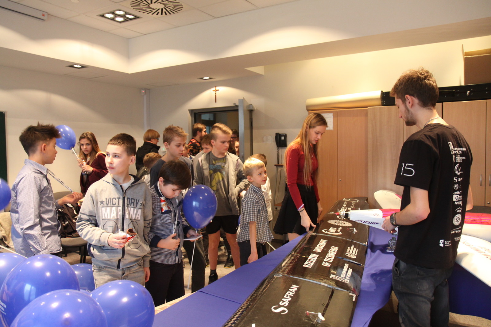 Jesteśmy w szpitalu już po raz drugi, w tym roku pokazujemy modele samolotów z zawodów SAE Aero Design 2016 i z Air Cargo Challenge w Zagrzebiu. Zainteresowanie ze strony dzieci jest duże, najczęściej pytają o to dlaczego w modelu znajdują się piłeczki. Są one imitacją pasażerów siedzących w prawdziwym samolocie – mówi Aleksandra Pasich studentka II roku kierunku Lotnictwo i Kosmonautyka na Wydziale Budowy Maszyn i Lotnictwa, należąca do koła EUROAVIA Rzeszów.