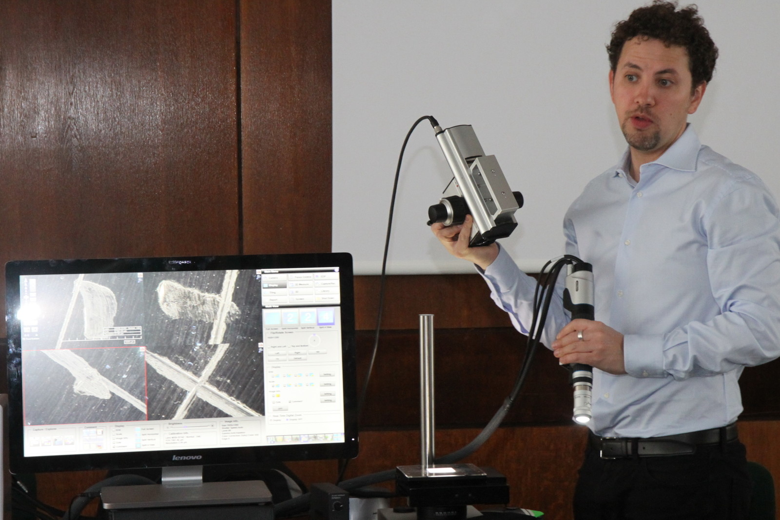Cyfrowy wideomikroskop 3D znajduje zastosowanie w wielu dziedzinach, m.in. elektrotechnice, inżynierii materiałowej, muzealnictwie, kryminalistyce, bankowości, biologii, kosmetologii, gemmologii. Uczestnicy spotkania mieli możliwość zbadania próbek przyniesionych na prezentację, co pozwoliło na sprawdzenie przydatności tego typu urządzenia w życiu codziennym.