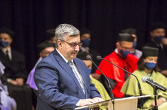 Głos zabrali również przewodniczący Parlamentu Studentów Rzeczypospolitej Polskiej Dominik Leżański oraz przewodniczący Samorządu Studenckiego naszej uczelni Michał Klimczyk, który w swoim wystąpieniu podkreślił m.in. zalety studiowania na naszej uczelni i zachęcał studentów pierwszego roku do działalności w organizacjach studenckich.