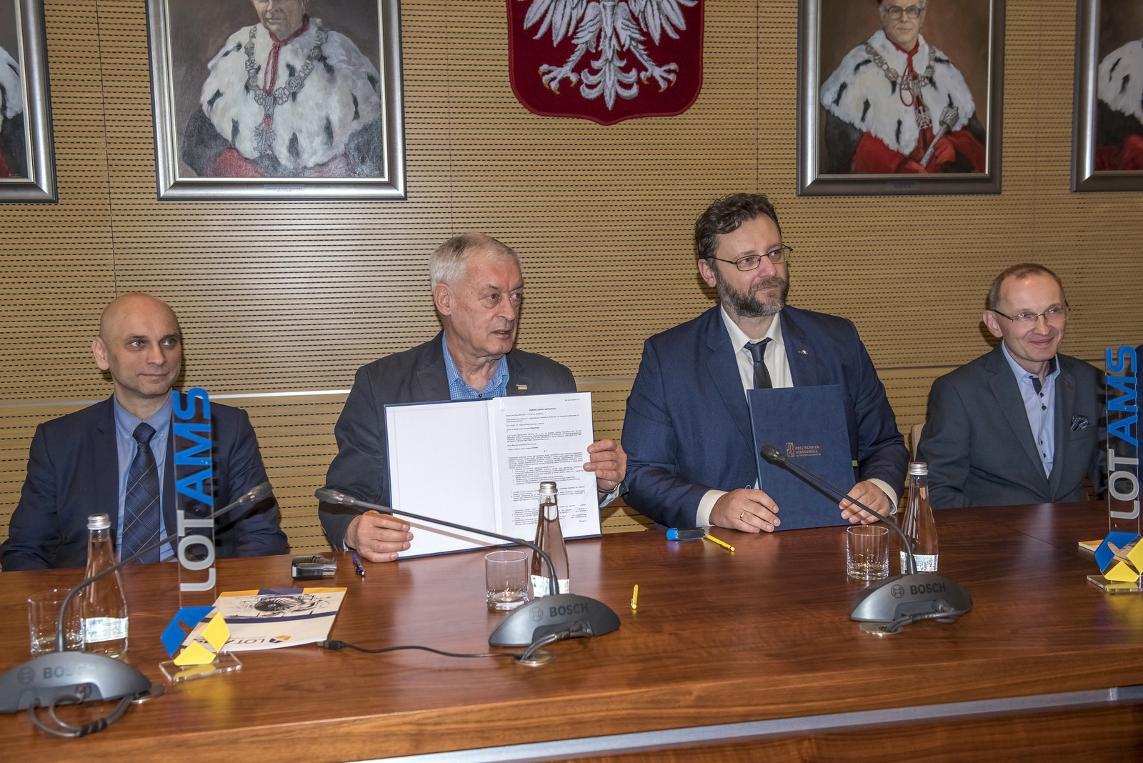 Umowę podpisali prof. dr hab. inż. Tadeusz Markowski, Rektor Politechniki Rzeszowskiej i Marcin Kwietniak, Dyrektor Biura Marketingu w LOT Aircraft Maintenance Services Sp. z o.o.