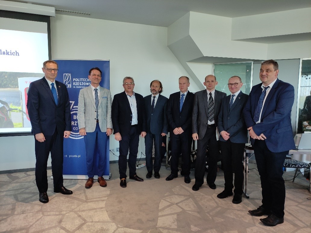 Od lewej: prof. PRz G. Masłowski, prof. PRz R. Zajdel, dr inż. R. Ziemba, dr inż. K. Kamuda, dr inż. W. Sabat, prof. PRz M. Węglarski, prof. PRz P. Jankowski-Mihułowicz, prof. PRz D. Mazur,