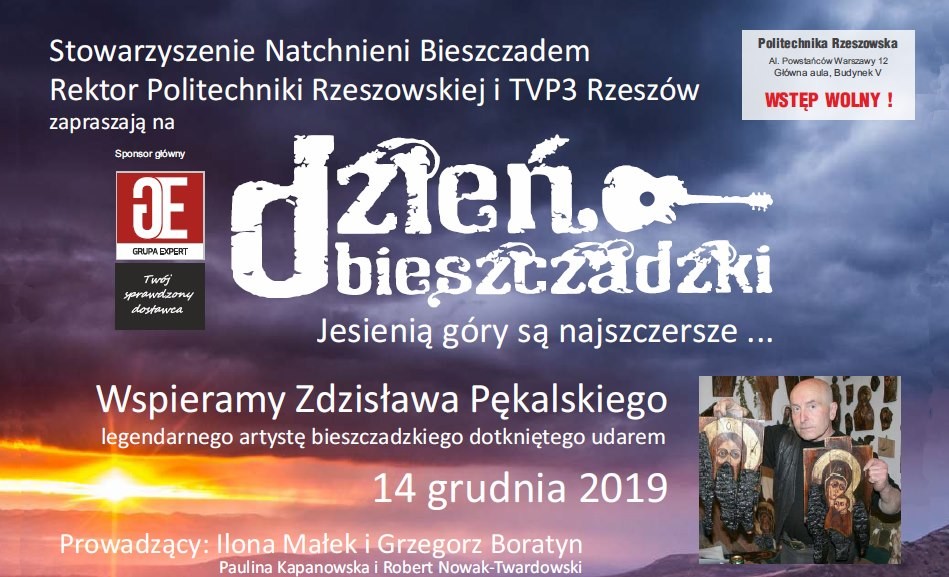 Zapraszamy na III edycję Dnia Bieszczadzkiego pod tytułem „Jesienią góry są najszczersze...”. Organizatorem wydarzenia jest Stowarzyszenie Natchnieni Bieszczadem w Cisnej. Spotkanie pod patronatem Rektora Politechniki Rzeszowskiej prof. dr. hab. inż. Tadeusza Markowskiego odbędzie się 14 grudnia br. w głównej auli Politechniki Rzeszowskiej.