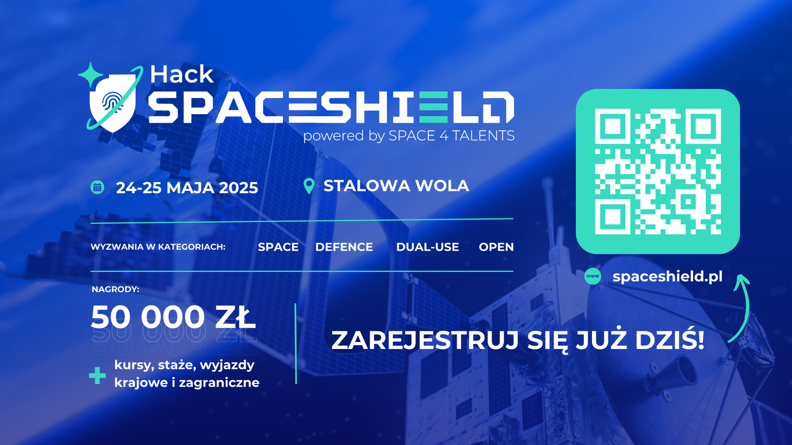 Pula nagród wynosi 50 tys. zł i obejmuje nagrody finansowe, kursy, szkolenia oraz wyjazdy na międzynarodowe wydarzenia. Najlepsze projekty otrzymają również możliwość udziału w konkursach startupowych, w tym na SpaceShield Summit, gdzie mogą znaleźć inwestorów i partnerów biznesowych.